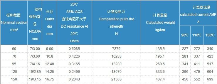 注:NRLH60GJ絞線電阻為同截面NRLH58GJ型絞線的電阻除以1.03449。