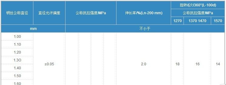 鋼絞線內拆股鋼絲的力學性能應符合表1規定。