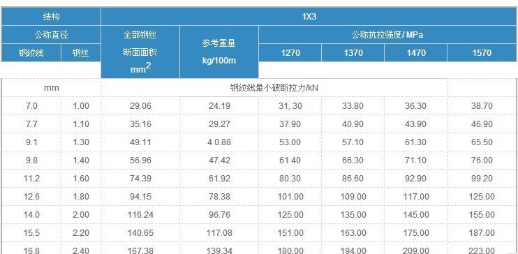 鍍鋅鋼絞線按公稱抗拉強度分為四級1270 MPa、l370MPa、l 470 MPa和1570 MPa。
